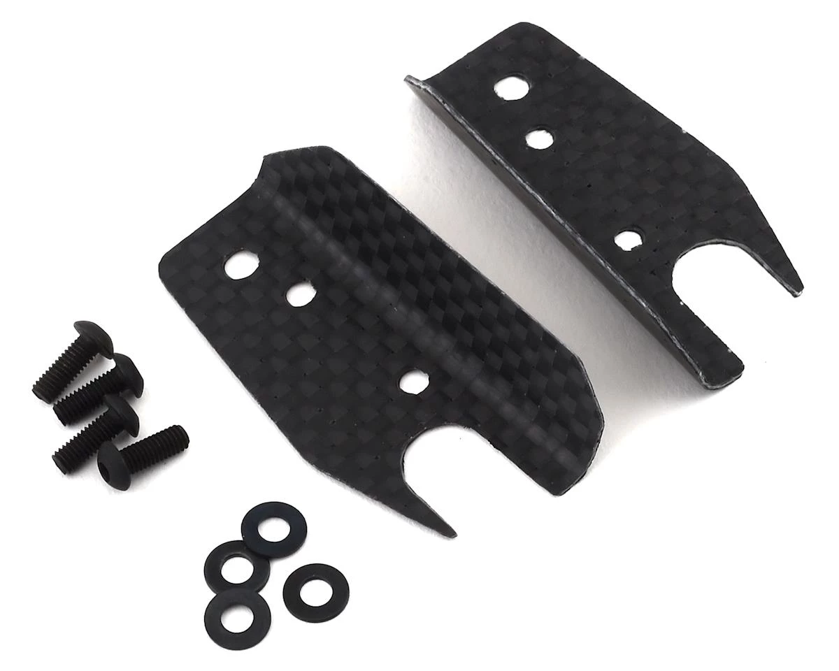 The ProTek RC Associated RC8B3.2 Series Carbon Front Upper Arm Wing is an aero option that attaches directly to the front upper arms. This tuning option helps to increase front end grip and traction at higher speeds, while helping to improve the front/rear balance in the jumps.